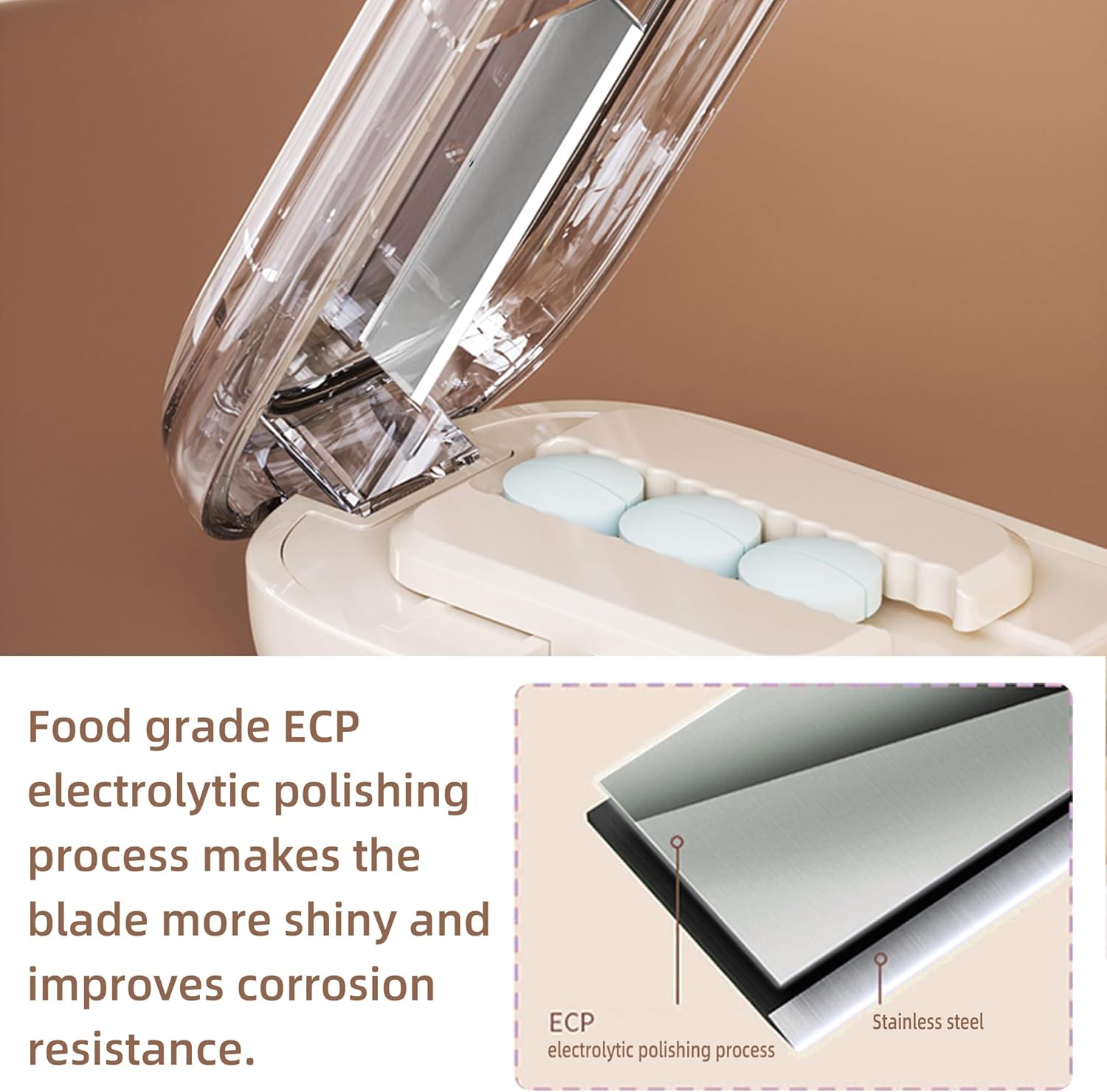The pill box is made of food-safe ABS and is safe for use in contact with medications. The stainless steel blade remains sharp for a long time and is resistant to rust and wear.