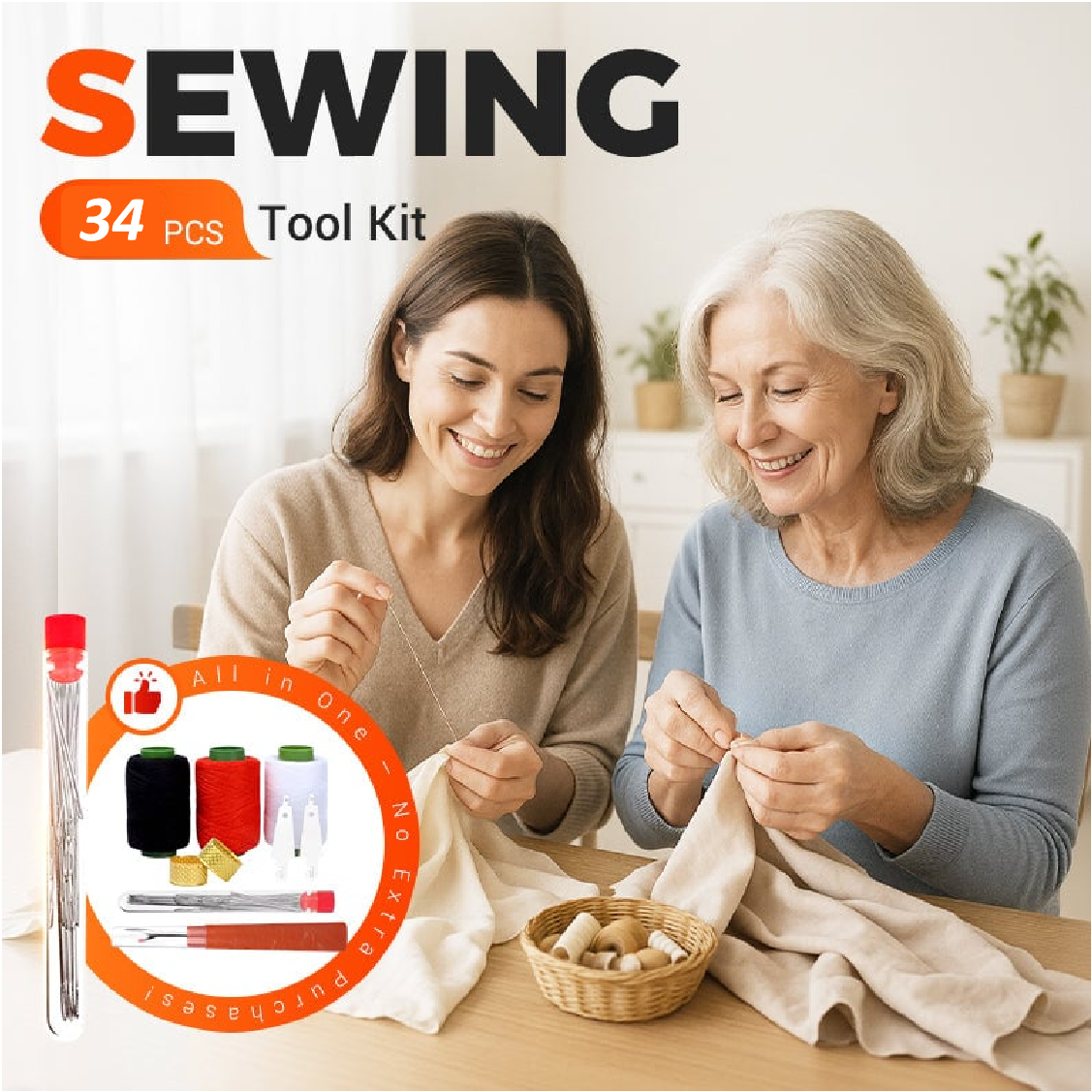 From everyday fixes to creative projects, this set includes 34 essential tools—needles, threads, scissors, thimble, tape measure, buttons, safety pins, and more. Everything you need is in one compact kit.
