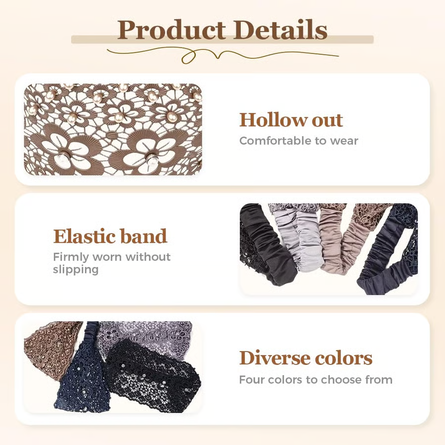 Crafted from delicate embroidered lace with elastic for a secure fit, these headbands won’t pull or damage hair. The 5-petal floral pattern with pearl accents adds an elegant, lightweight touch perfect for all-day wear.