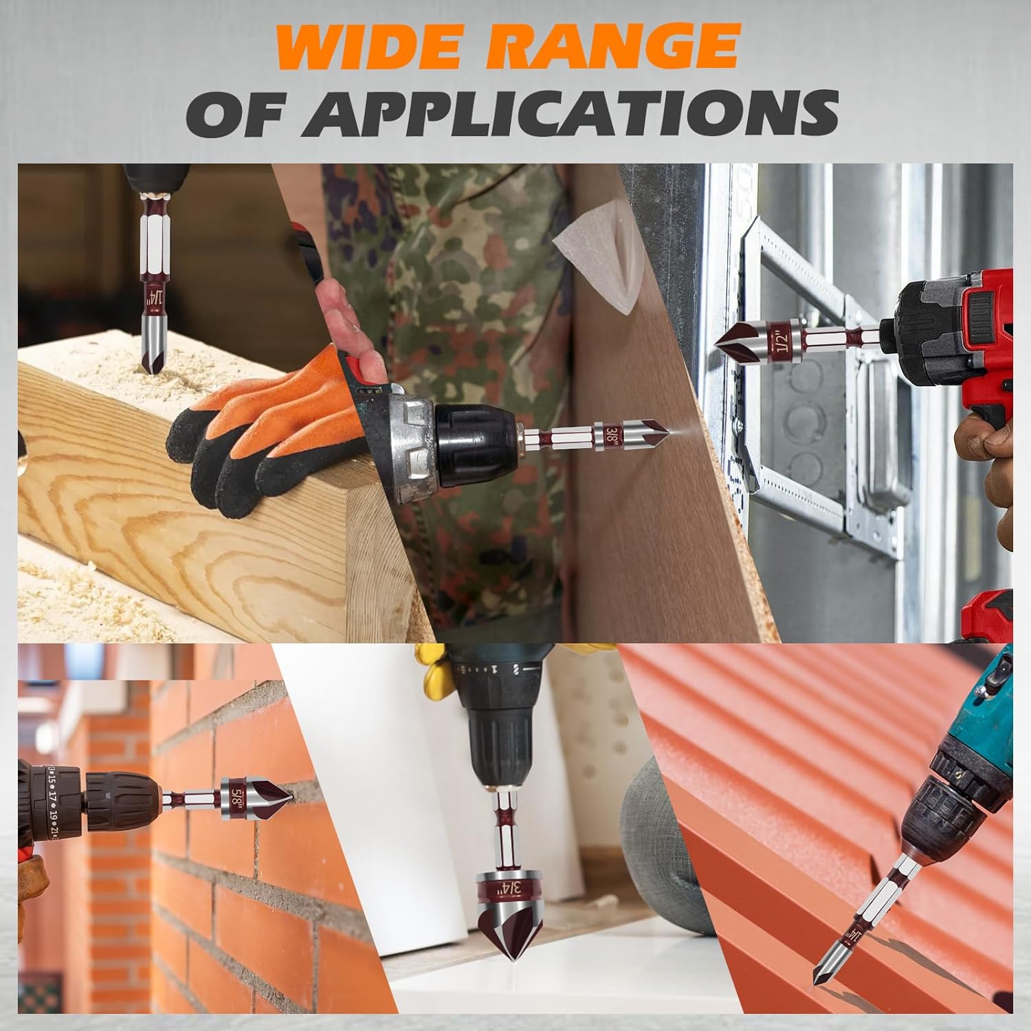 🛠️Drill flawless countersunk holes in seconds with this industrial-grade 5-piece set—engineered to sink screws flush into wood, metal, and plastic for a professional, smooth finish every time.🧰