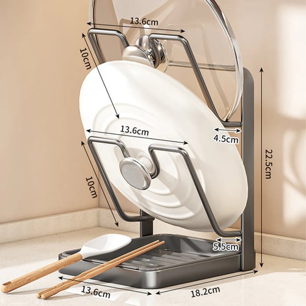 Built to handle it all—cast iron, glass, or stainless steel. The sturdy structure keeps even heavy lids upright without sagging or tipping. The thoughtful design includes an ABS drainage tray that prevents water stains and protects your countertop or cabinet from moisture damage. Durable, stable, and made for everyday cooking life.