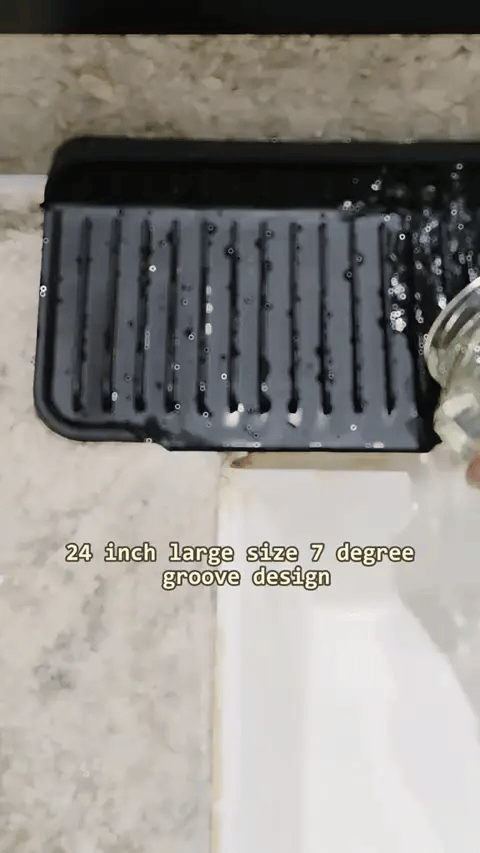 【Enhanced Design Sink Mats】The newly upgraded Sink Splash Guard 24-inch length fits perfectly into most sinks, the latest 5° slope design auto-drains keep countertops clean and free of standing water, the adaptive adjustable center hole diameter for 0.65-2.5" faucets, and the side-fold design eliminates the need to worry about gaps between walls and kitchen mats