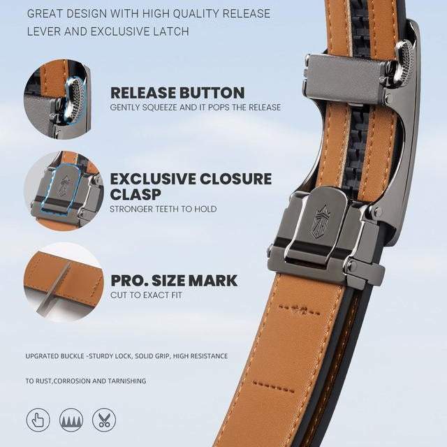 The adjustable ratchet dress belt comes with an elegant gift box which is also allowed given away to another male as a gift on Birthdays, anniversaries, Father's Day, or Christmas