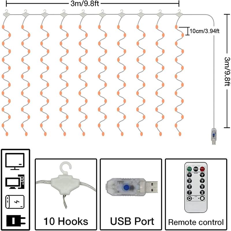 Designed for easy use, simply plug the curtain lights into any USB charger or power bank and enjoy beautiful lighting anywhere you like. With a 9.8ft lead wire and 10 included hooks, hanging and styling your lights has never been easier.