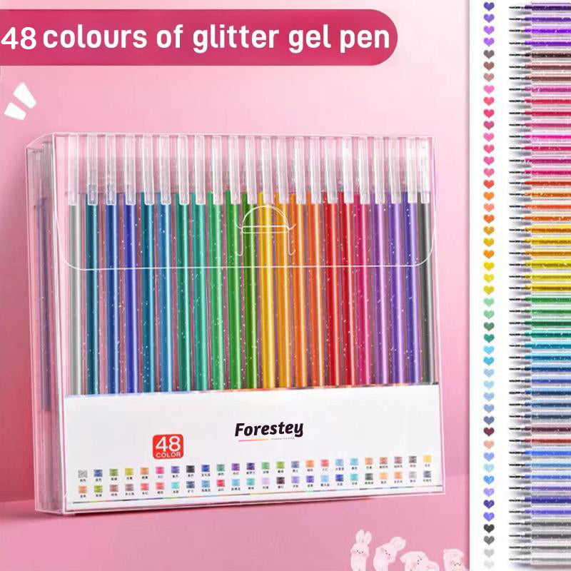 The glitter gel pen has a well-made transparent barrel and the refill is made of high-quality ink that is smooth and fluid, and the colors are bright and vivid.