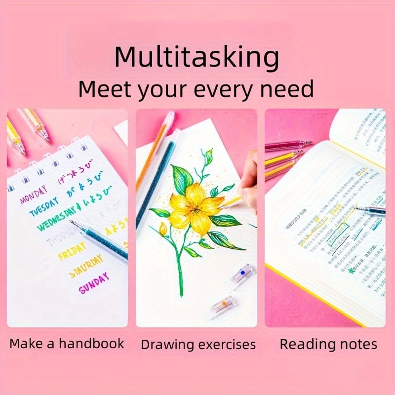 The ink capacity has been increased by 300%, allowing you to create continuously for hours on end. One pen holds the equivalent of three standard multi-color glitter pens, ensuring every stroke ignites your imagination.