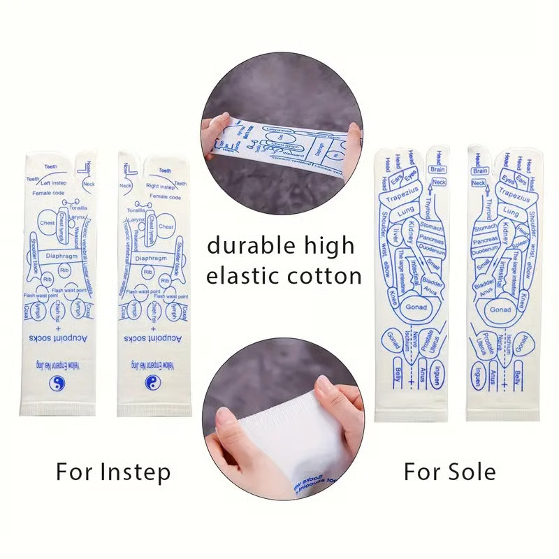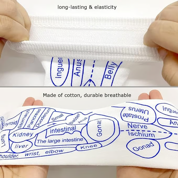 Each sock features a detailed diagram of reflex points. These are strategically placed based on reflexology principles to target areas of the body.