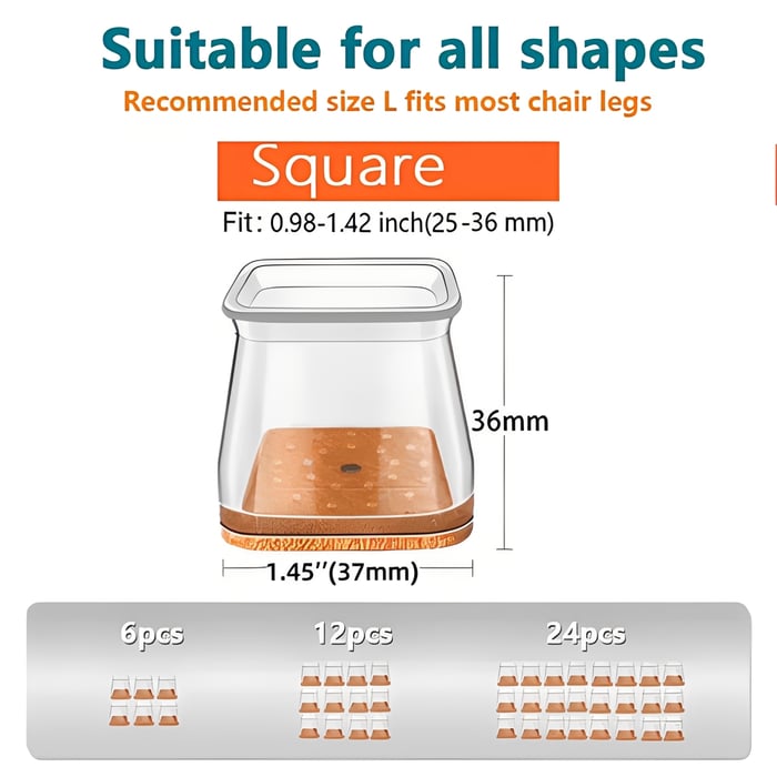 - Transparent & Stylish: Blends naturally with any chair leg.