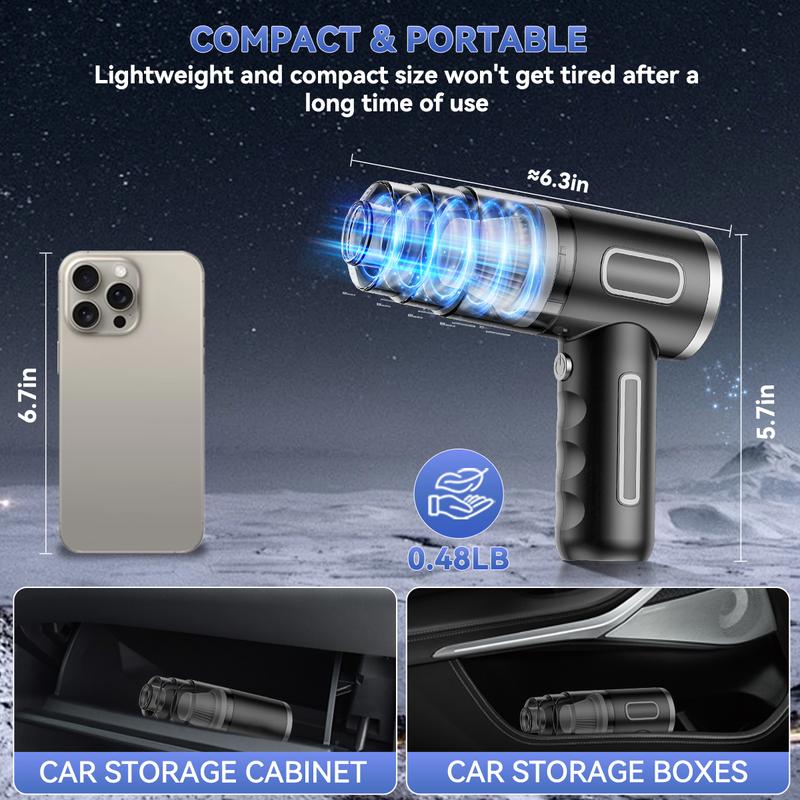 No worries! This high-power cordless handheld vacuum is lightweight yet powerful—keeping your ride fresh and clean anytime.