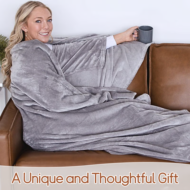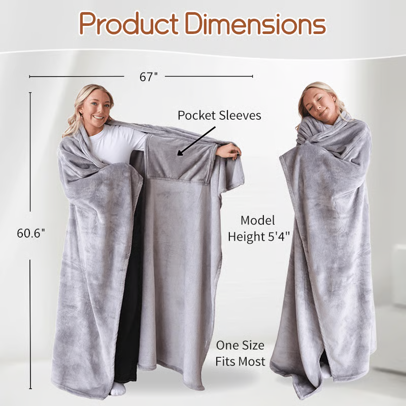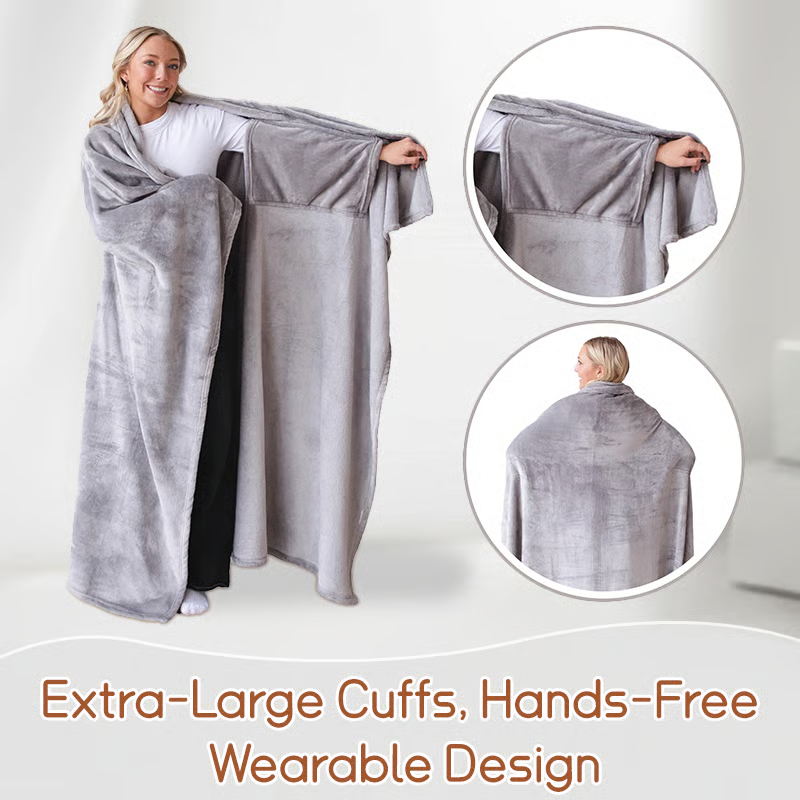 No more slipping blankets—This wearable design fits snugly around you, with soft fabric that wraps you in lasting comfort.